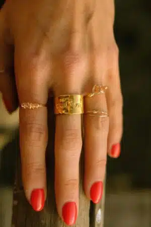 Un bijou comme un cri du cœur. La bague Sauvage incarne la lumière brute et l’élégance instinctive. Fabriqué en laiton plaqué or 3 microns, il est gravé à la main avec l’imperfection poétique d’un geste sincère. Chaque lettre vibre d’émotion, comme un talisman personnel.