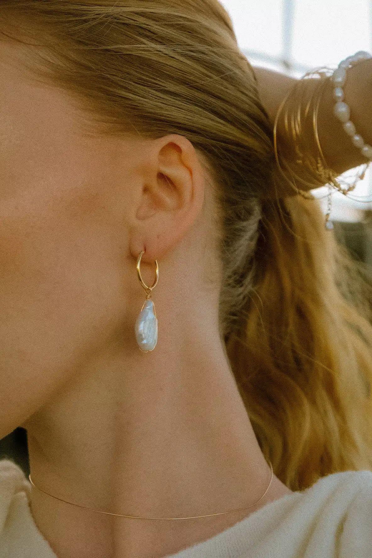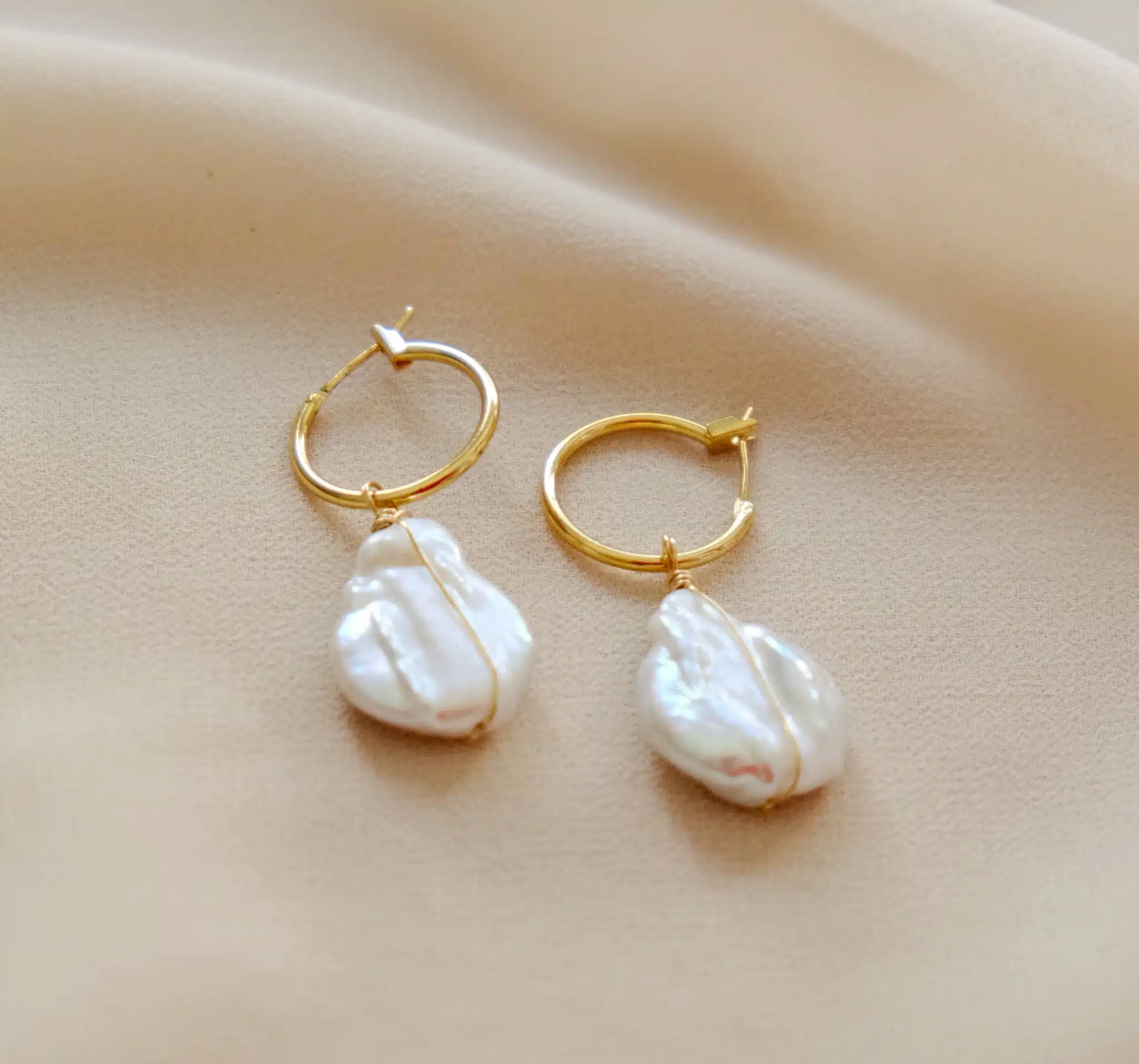 Composition : boucle doré à l’or fin , gold filled et perles d’eau douce