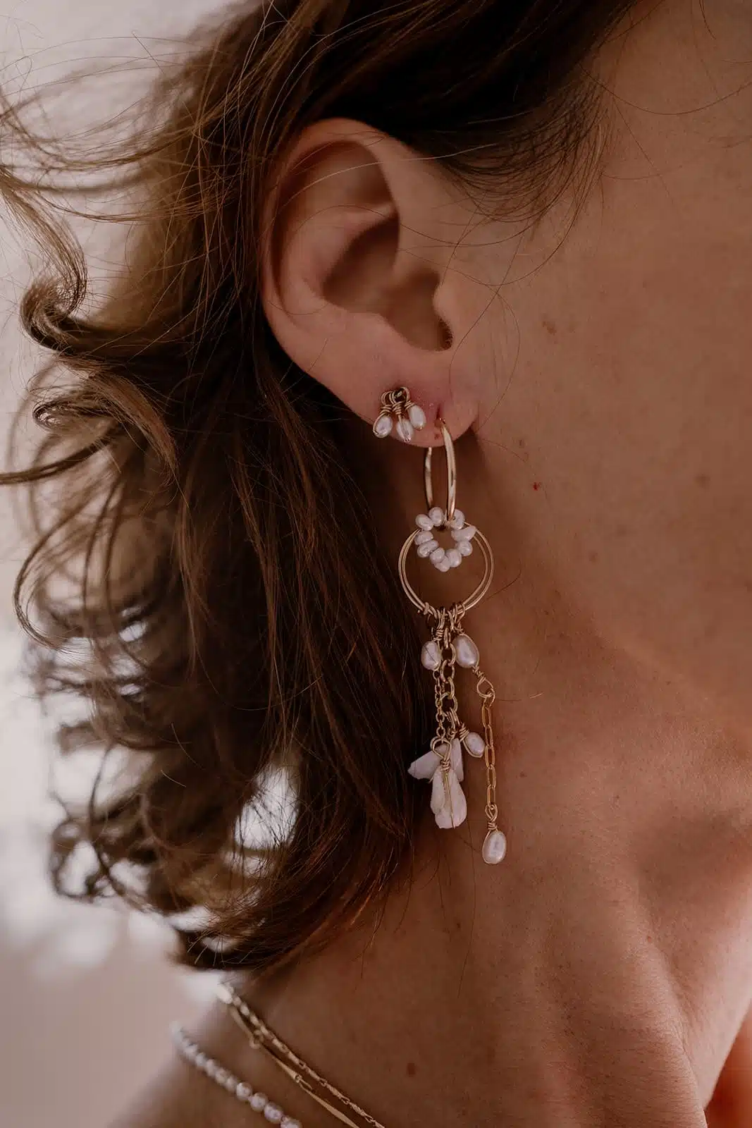 Composition : plaqué or 3 microns, perles,gold filled,  longue environ 5/6 cm
