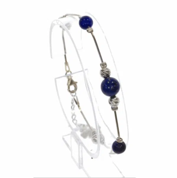 Bracelet argent lapis lazuli en pierres naturelles de grade A et argent 925.