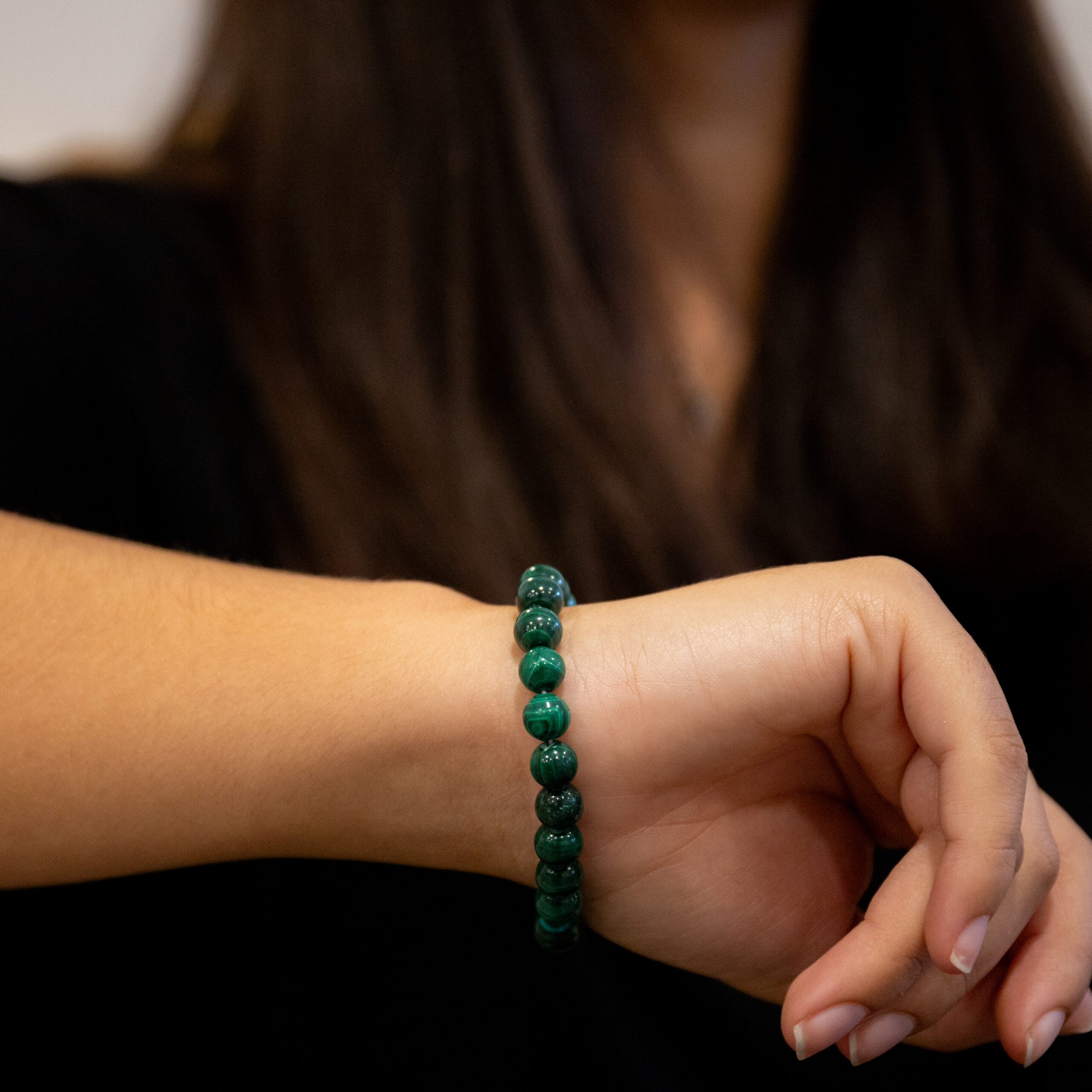 Bracelet Malachite en pierres naturelles de grade A, confectionné à la main. Parfait pour ajouter une touche d’élégance et de sophistication à votre poignet.