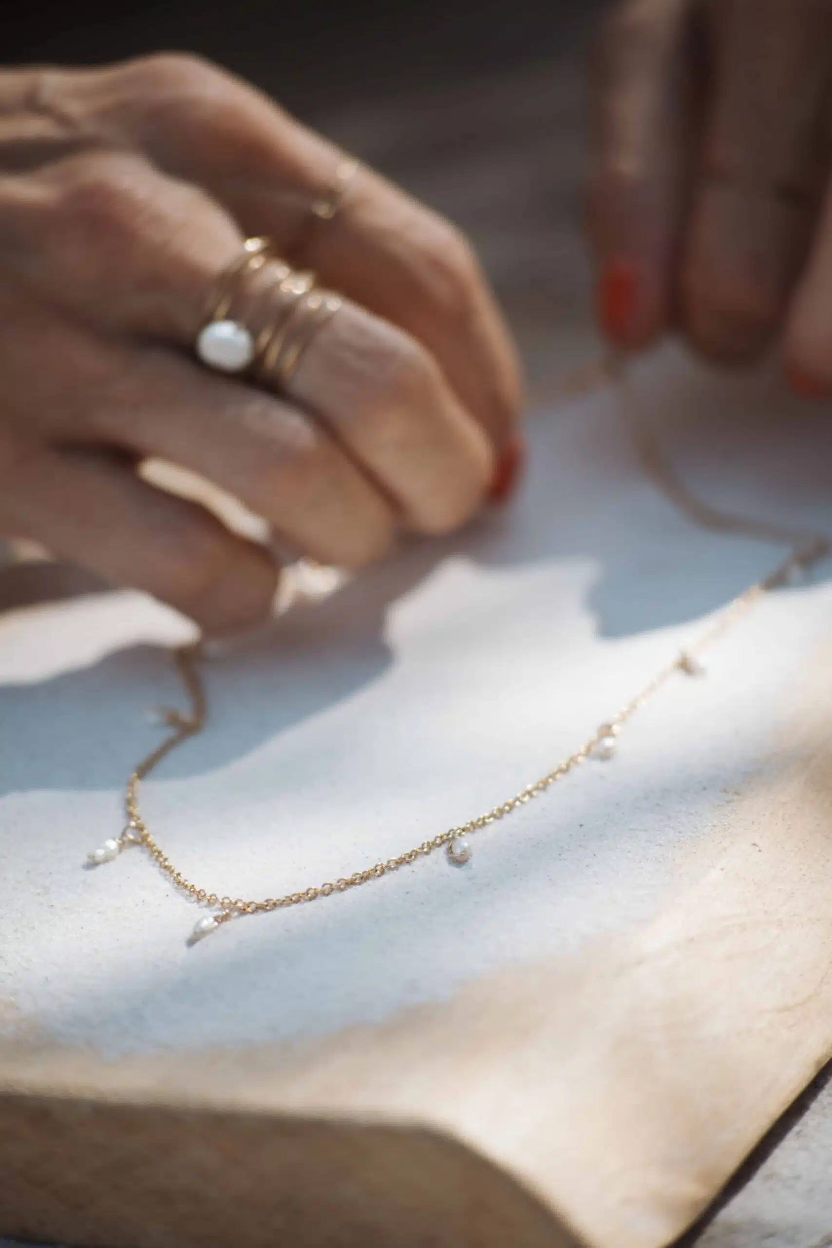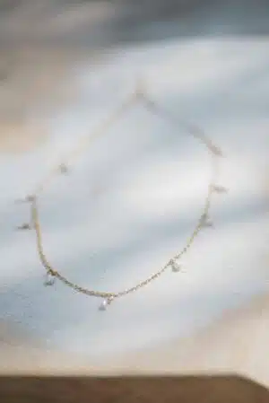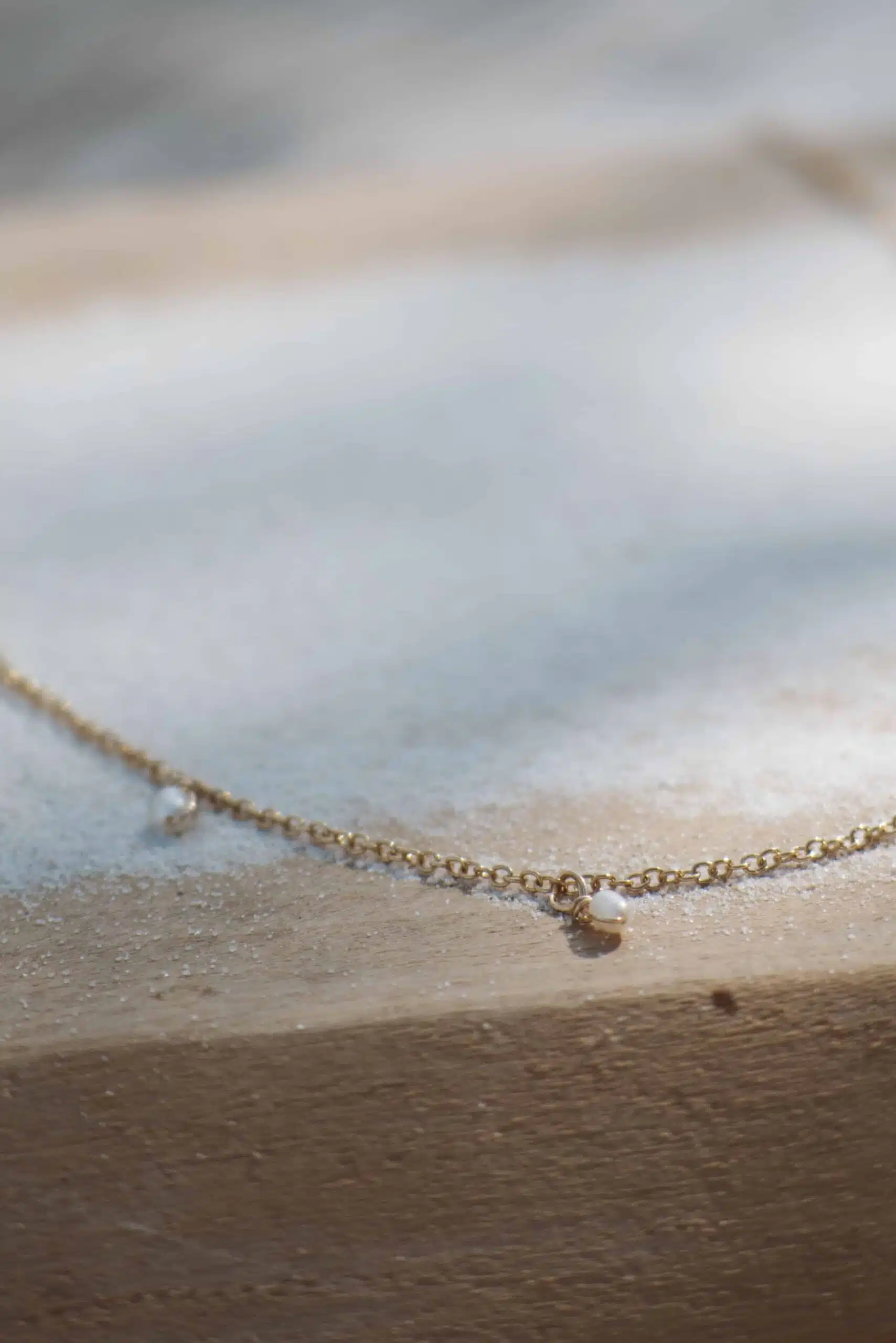 Chaine en plaqué or 3 microns, long de  45 cm et 9 perles d’eau douce