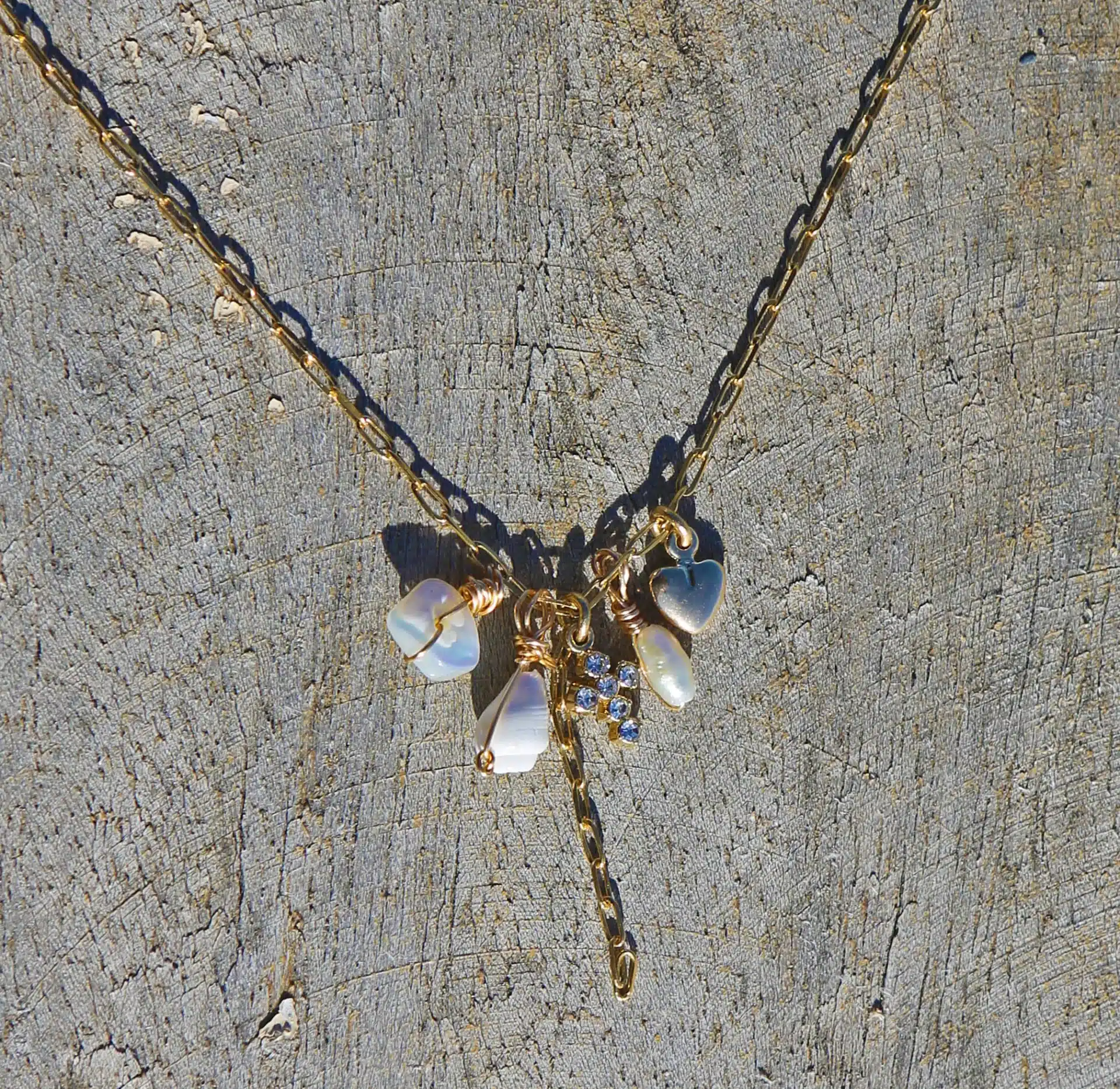 Collier plaqué or 3 microns avec perles d’eau douce et pépite de jade.
