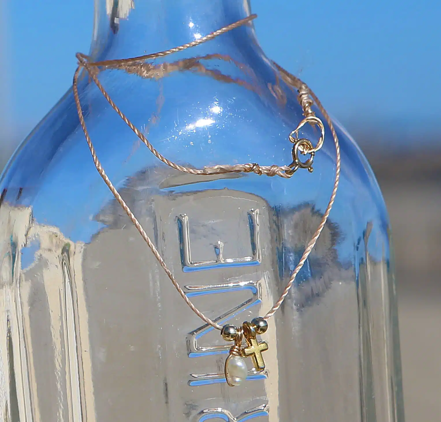 Composition : Lien en Nylon très résistant, fermoir, anneau sauvage et croix et plaqué or et gold filled