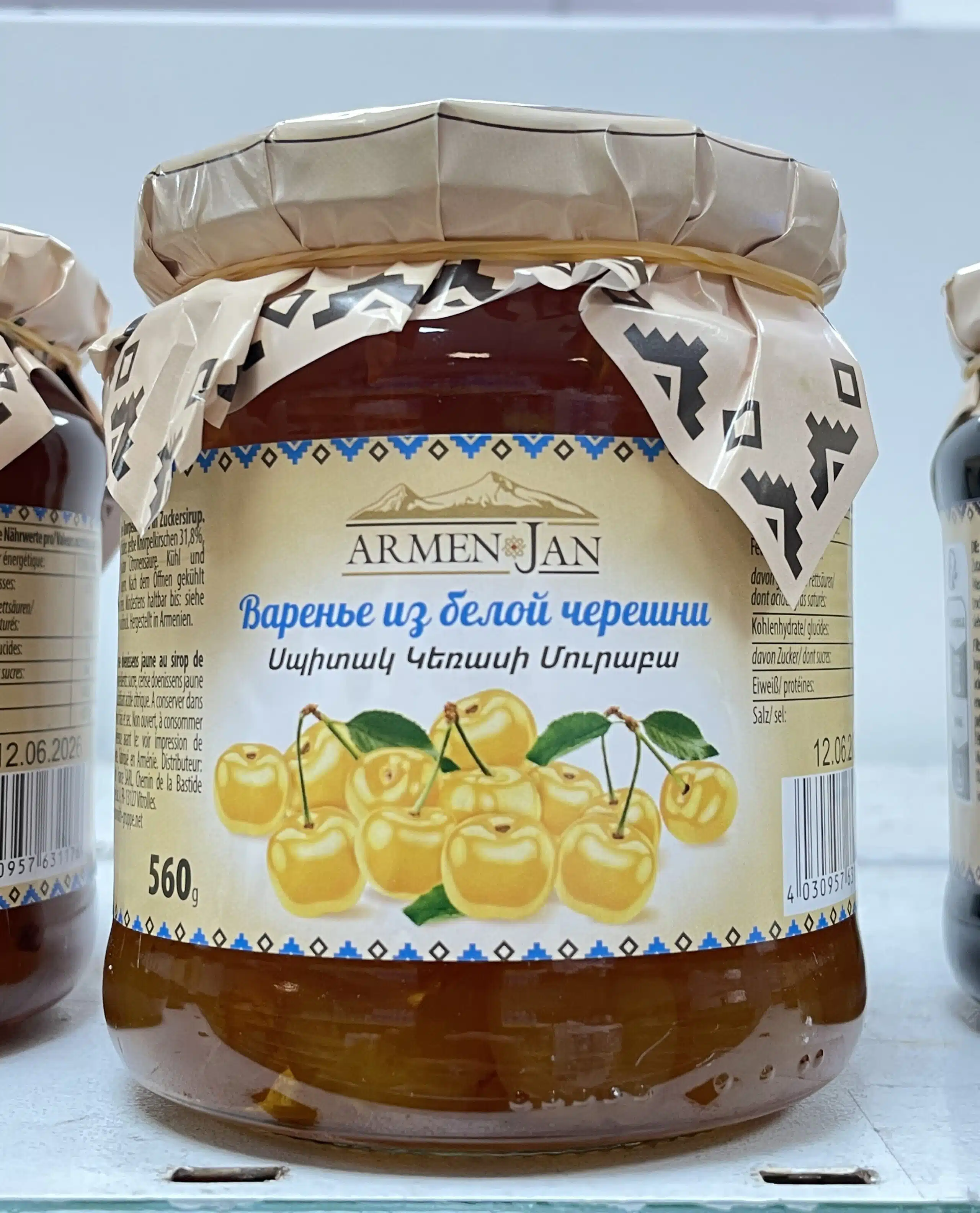 Plongez dans la tradition arménienne avec la confiture de cerises blanches Armenjan. Élaborée avec soin à partir de fruits sélectionnés, cette confiture artisanale révèle une douceur subtile et un goût délicatement sucré, propre à la cerise blanche. Sa texture fondante et son parfum fruité en font un accompagnement idéal pour vos tartines, crêpes, yaourts ou pâtisseries. Sans conservateurs artificiels, ce produit est fabriqué selon des méthodes traditionnelles, garantissant un plaisir sain et naturel.
