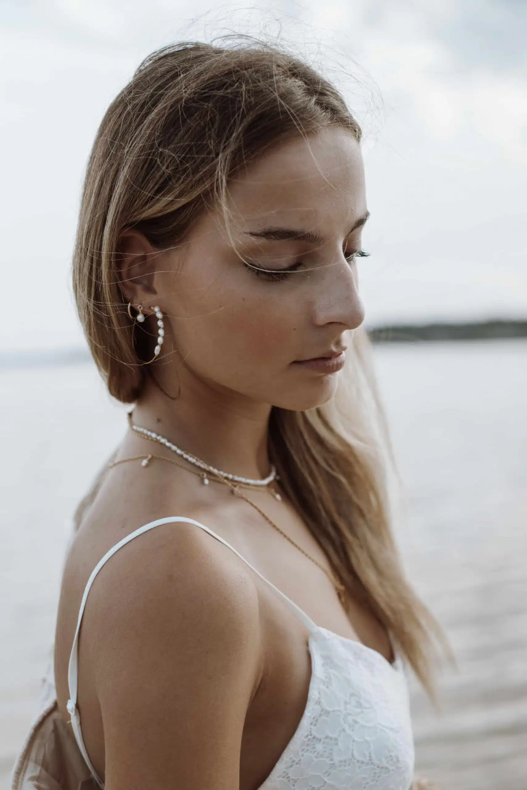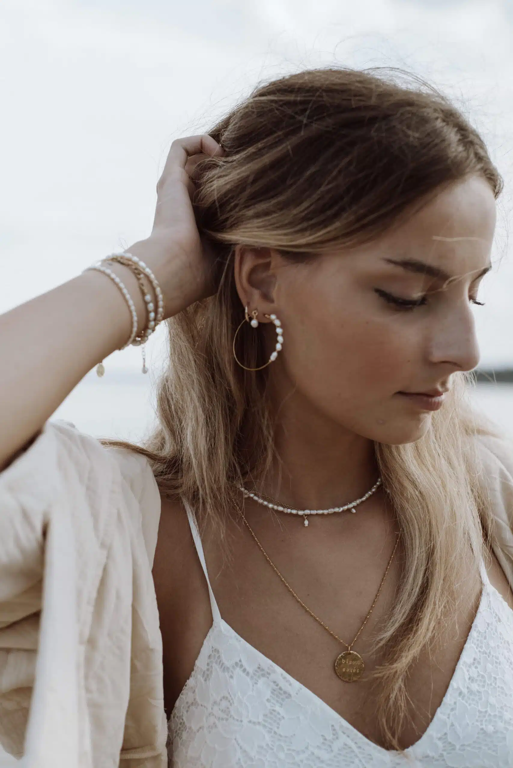 Ce bijou est réalisé avec des perles d’eau douce. Cette perle tendre et féminine, comme la nacre, procure apaisement et bien être… Afin que vos bijoux conservent leur plus bel éclat, évitez le contact avec l’eau. Si malgré tout vous oubliez de les enlever… no soucy, rincez les à l’eau claire  et séchez les avec un chiffon tout doux.