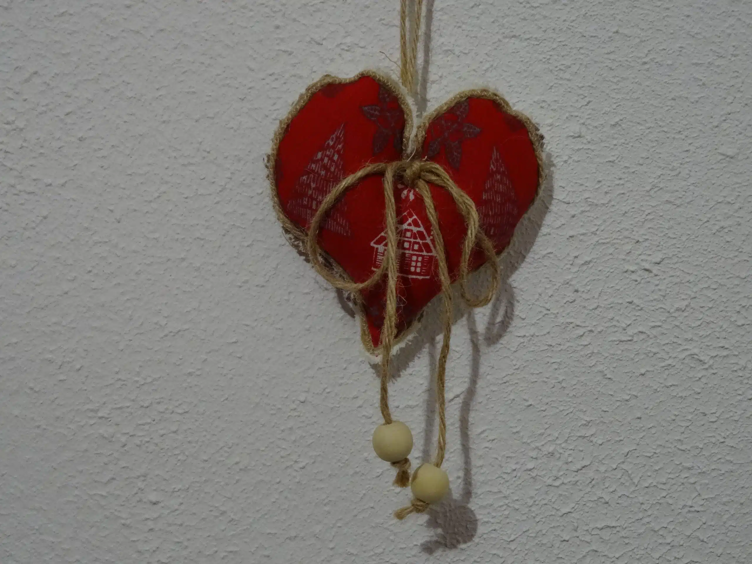 D’un artisanat authentique émerge ce cœur en tissu, d’un côté rouge il dépeint une scène paisible avec deux sapins et une petite maison, évoquant la chaleur et la magie des souvenirs d’enfance. L’autre face, d’un blanc, offre un contraste élégant, illuminé par la simplicité de deux perles en bois. Chaque détail de cette pièce, mesurant environ 12 cm, est le fruit d’un savoir-faire artisanal sans marque, mettant en avant l’amour du métier et l’unicité de la création.
