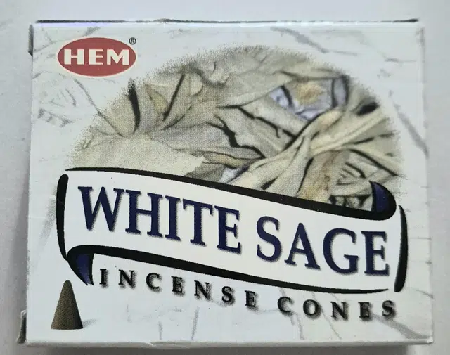 Boîte de cônes d’encens HEM au parfum White Sage (sauge blanche). Idéale pour purifier l’air, créer une atmosphère apaisante ou accompagner des moments de méditation et de relaxation.