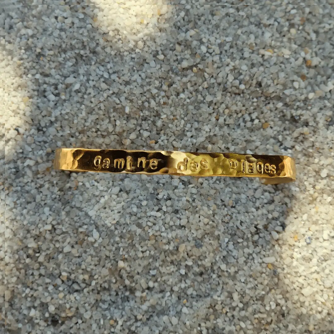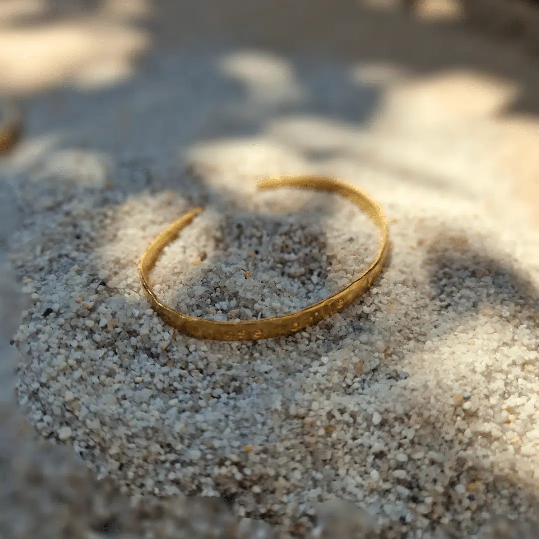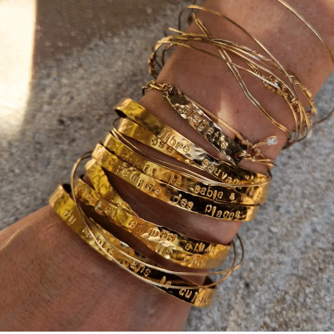 Un bijou comme un cri du cœur. Le jonc Sauvage incarne la lumière brute et l’élégance instinctive. Fabriqué en laiton plaqué or 3 microns, il est gravé à la main avec l’imperfection poétique d’un geste sincère. Chaque lettre vibre d’émotion, comme un talisman personnel.