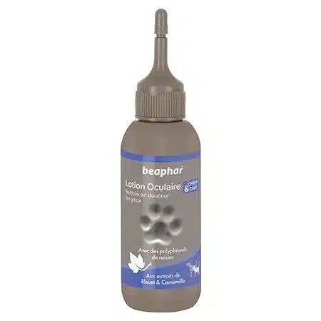 La lotion oculaire de Beaphar associe une base lavante douce à deux plantes traditionnellement utilisées pour le nettoyage des yeux : la Camomille et le Bleuet.