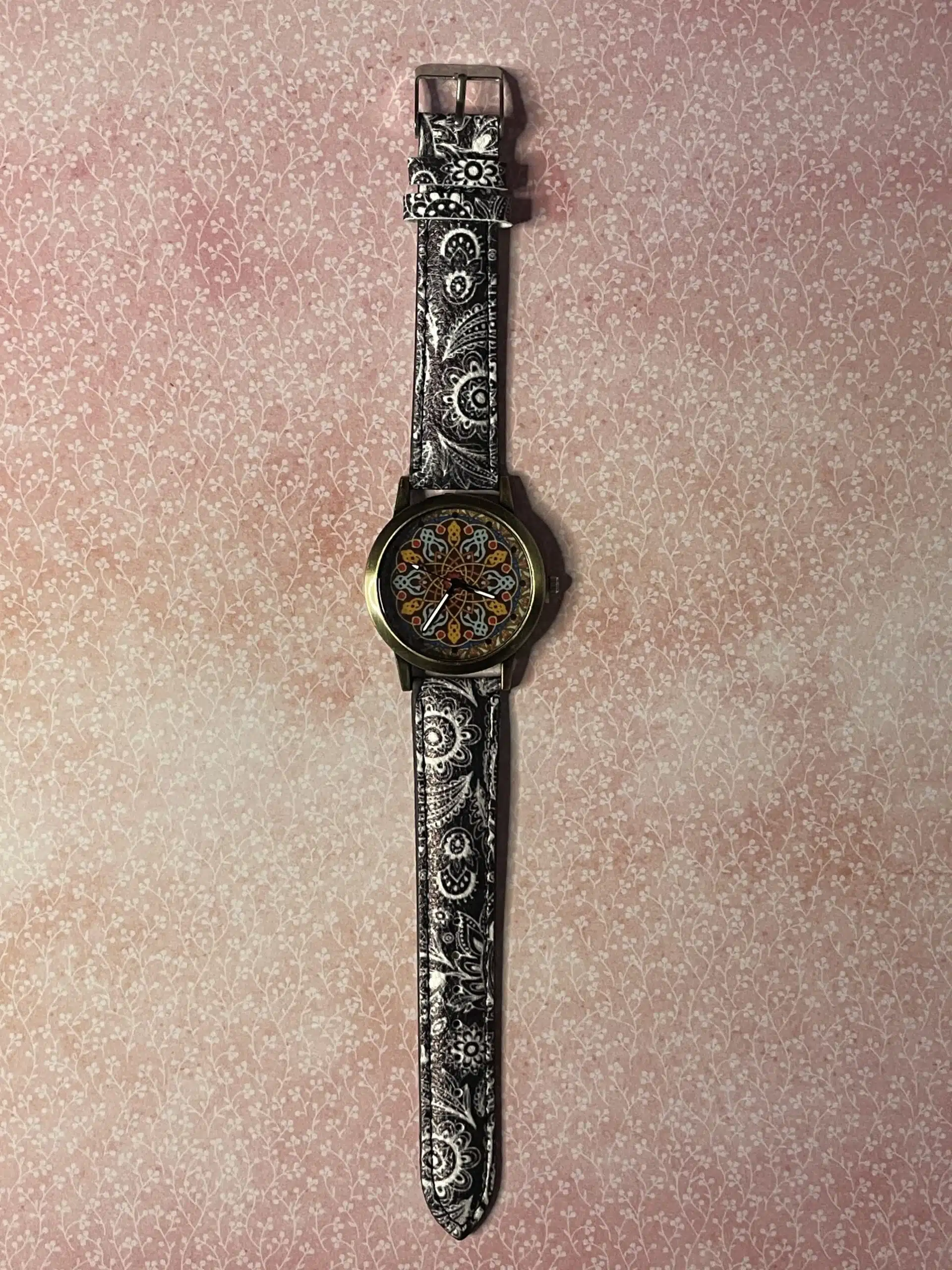 Découvrez cette élégante montre fantaisie spécialement conçue pour les femmes. Le cadran, d’un diamètre de 36 mm, s’associe parfaitement à son bracelet en simili cuir noir orné de motifs fleuris, d’une largeur de 18 mm. Ce détail floral ajoute une touche de féminité et de douceur, rendant cette montre à la fois chic et originale. Avec son boîtier rond en acier, elle combine robustesse et élégance, offrant ainsi un accessoire de mode intemporel et distinctif. Pour toutes celles qui cherchent à parfaire leur tenue avec une touche d’originalité, cette montre neuve sera l’alliée idéale pour chaque occasion.