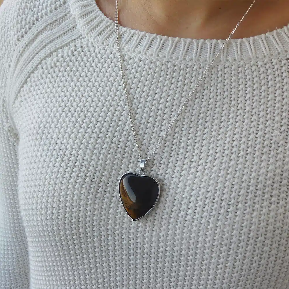 Pendentif Cœur Oeil de Tigre en pierres naturelles de grade A, confectionné à la main. Parfait pour ajouter une touche d’élégance et de sophistication.