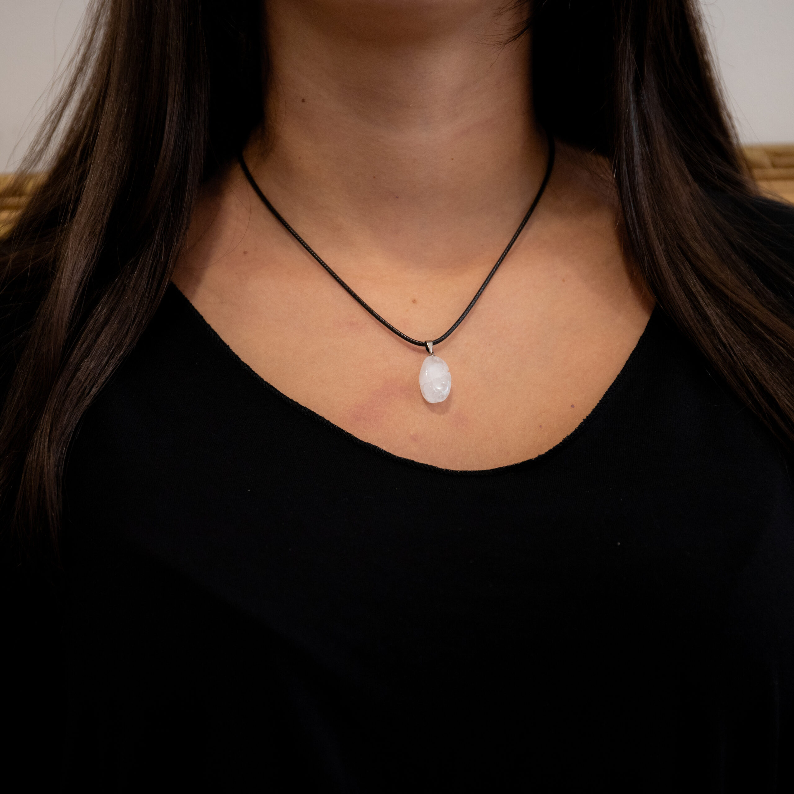 Pendentif Cristal de Roche en pierres naturelles de grade A, confectionné à la main. Parfait pour ajouter une touche d’élégance et de sophistication.