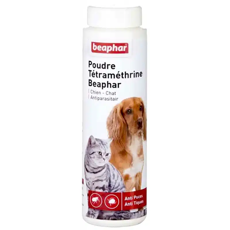 Du fait de sa composition à base de Tétraméthrine (Pyrèthrénoïde), cette poudre possède une importante activité insecticide sur les ectoparasites tels que les puces et les tiques.