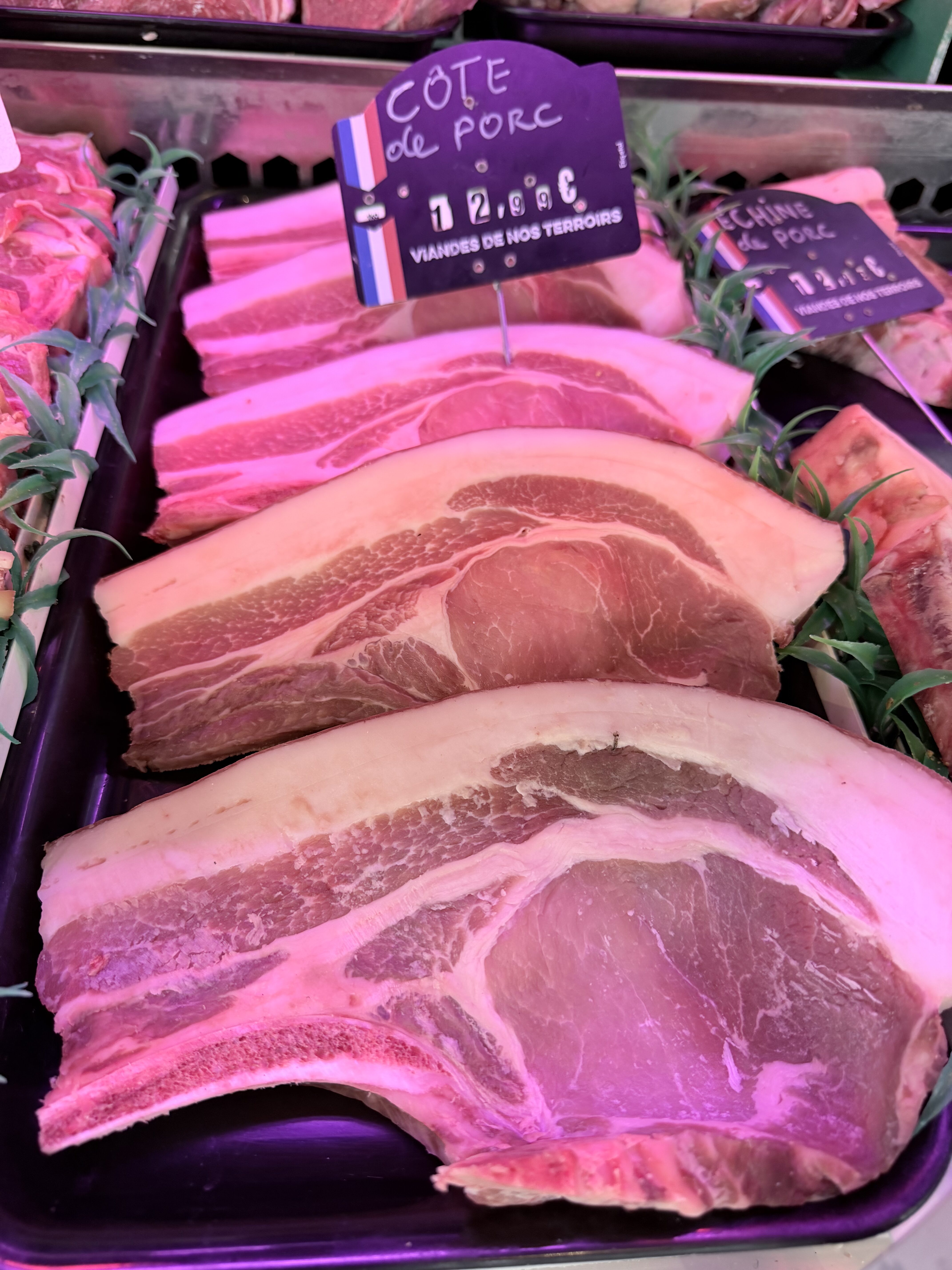 Côtes de porc fraîches, idéales pour une cuisson rapide à la poêle, au four ou au barbecue. Viande savoureuse et accessible pour tous les repas.