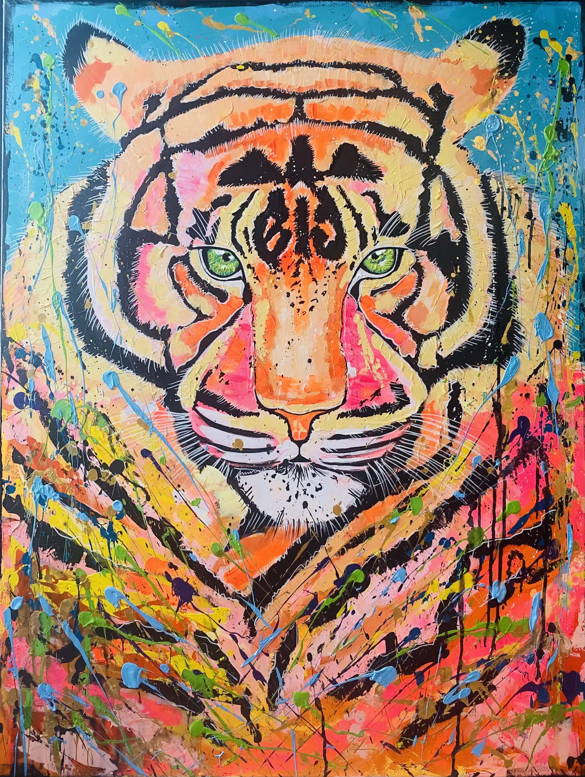 Chaque détail de cette peinture a été conçu pour rendre hommage à la force, la détermination et la beauté du tigre. “RAJAH le TIGRE” est une œuvre captivante qui ajoutera une touche de nature et de puissance à votre intérieur.