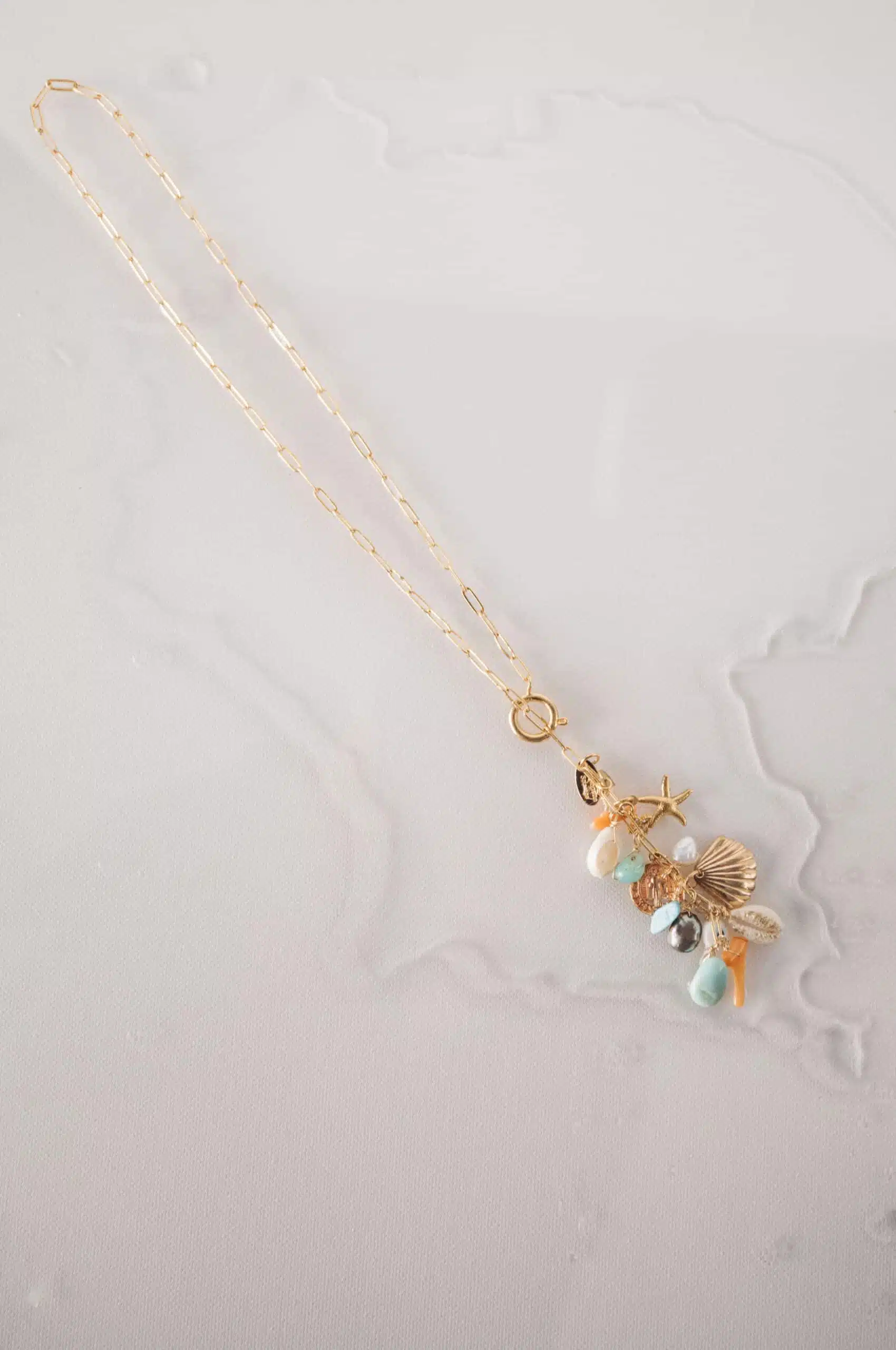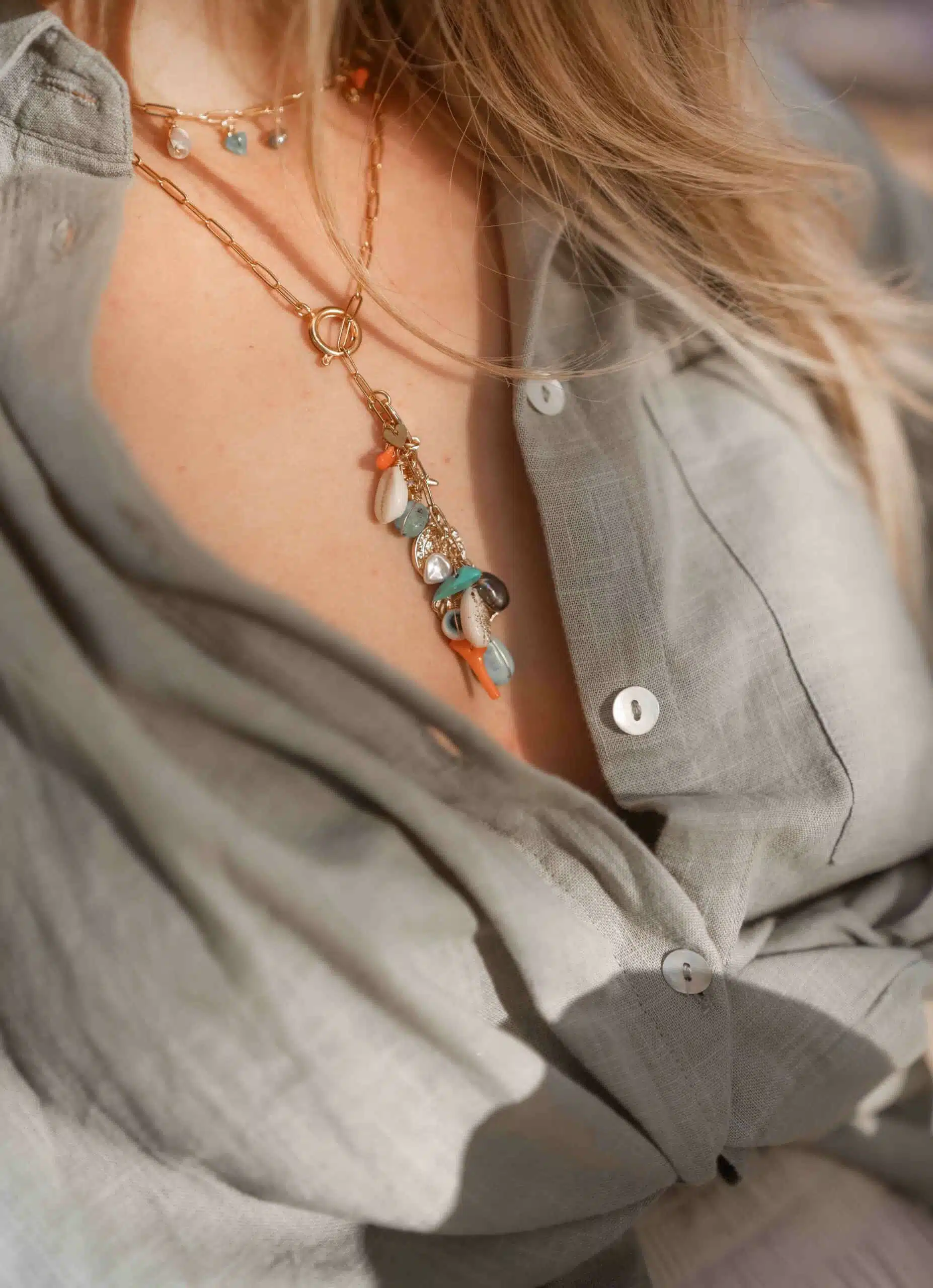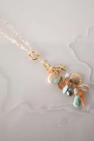 Nacre, plaqué or 3 microns, coquillages , long de 85 cm