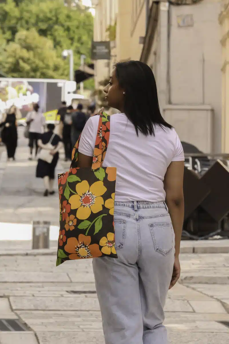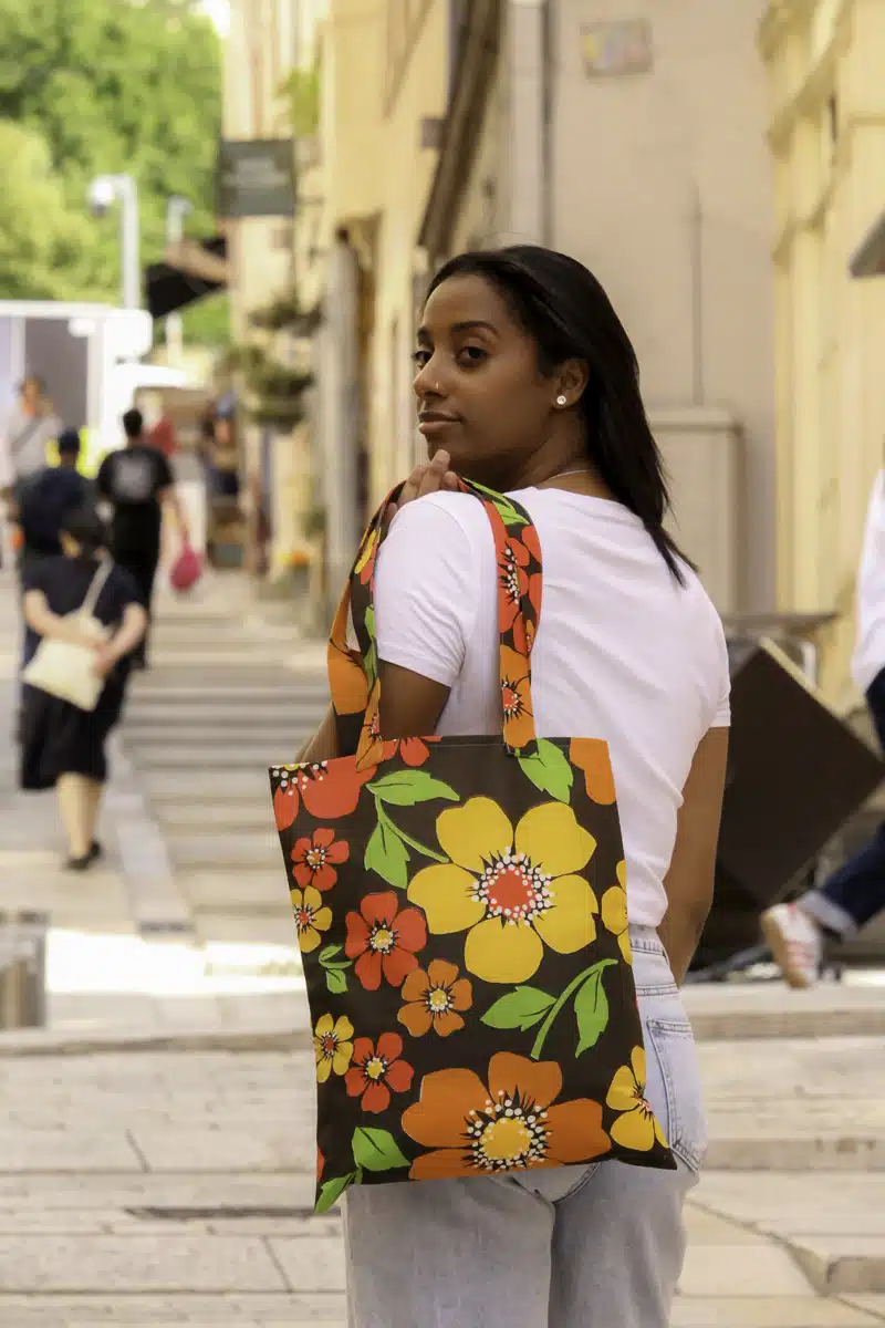 Son grand motif floral aux couleurs éclatantes apporte une touche estivale et positive, tout en restant facile à assortir. Son format généreux permet d’y glisser documents, accessoires ou achats du jour, sans compromis sur le confort grâce à ses anses adaptées au porté épaule.
